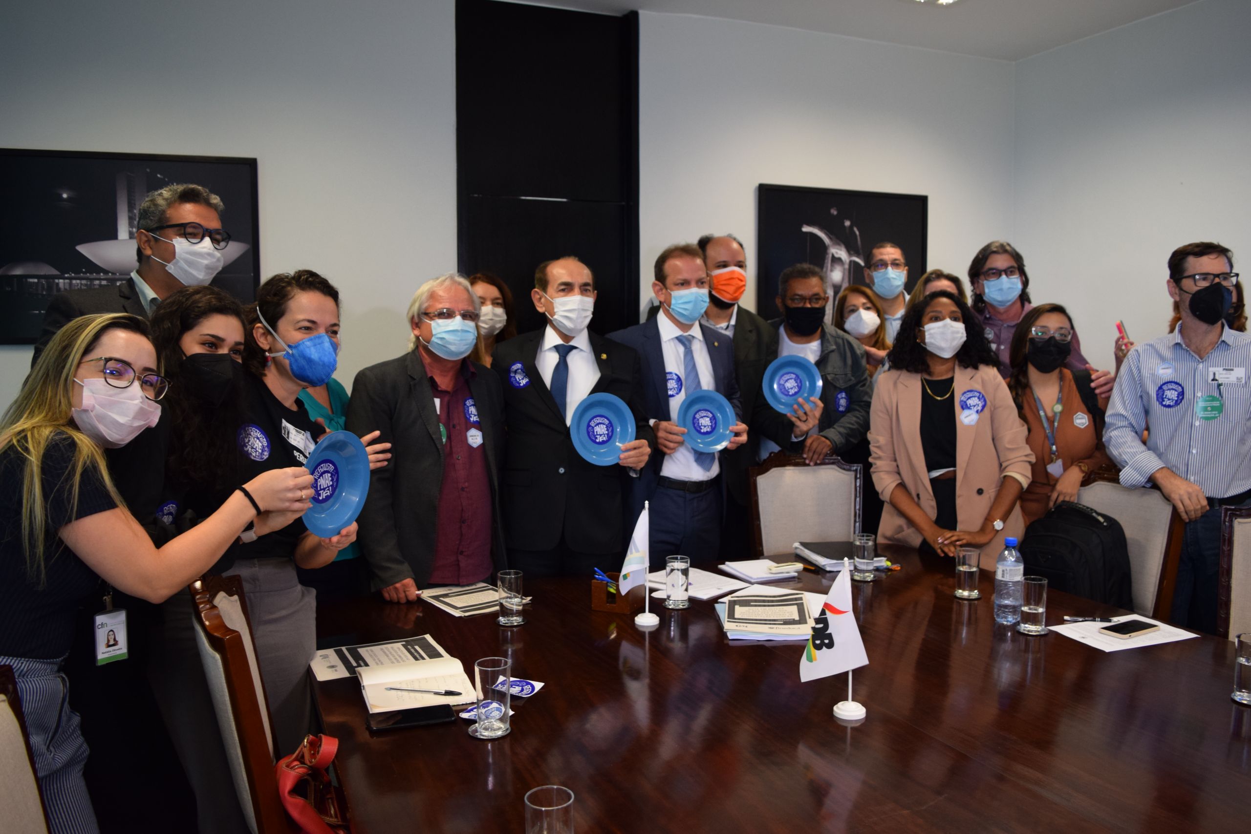 Castro recebeu ontem as 7.390 assinaturas registradas em petição pública pela derrubada do veto de Bolsonaro e pelo aumento na verba da alimentação escolar. O senador ouviu representantes da FIAN Brasil, da Ação da Cidadania, da Aliança pela Alimentação Adequada e Saudável, do Conselho Federal de Nutricionistas (CFN), da Confederação Nacional dos Trabalhadores na Agricultura (Contag) e do Instituto Alana. Ele entregou o documento da sociedade civil ao presidente do Senado, Rodrigo Pacheco (PSD-MG).