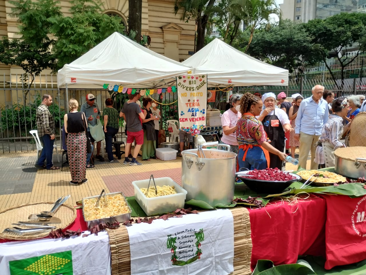 Em São Paulo, uma das atividades do Banquetaço aconteceu na Praça da República, onde aconteceu uma linda festa com artistas, ativistas da segurança alimentar e nutricional, e a distribuição de 1000 refeições.