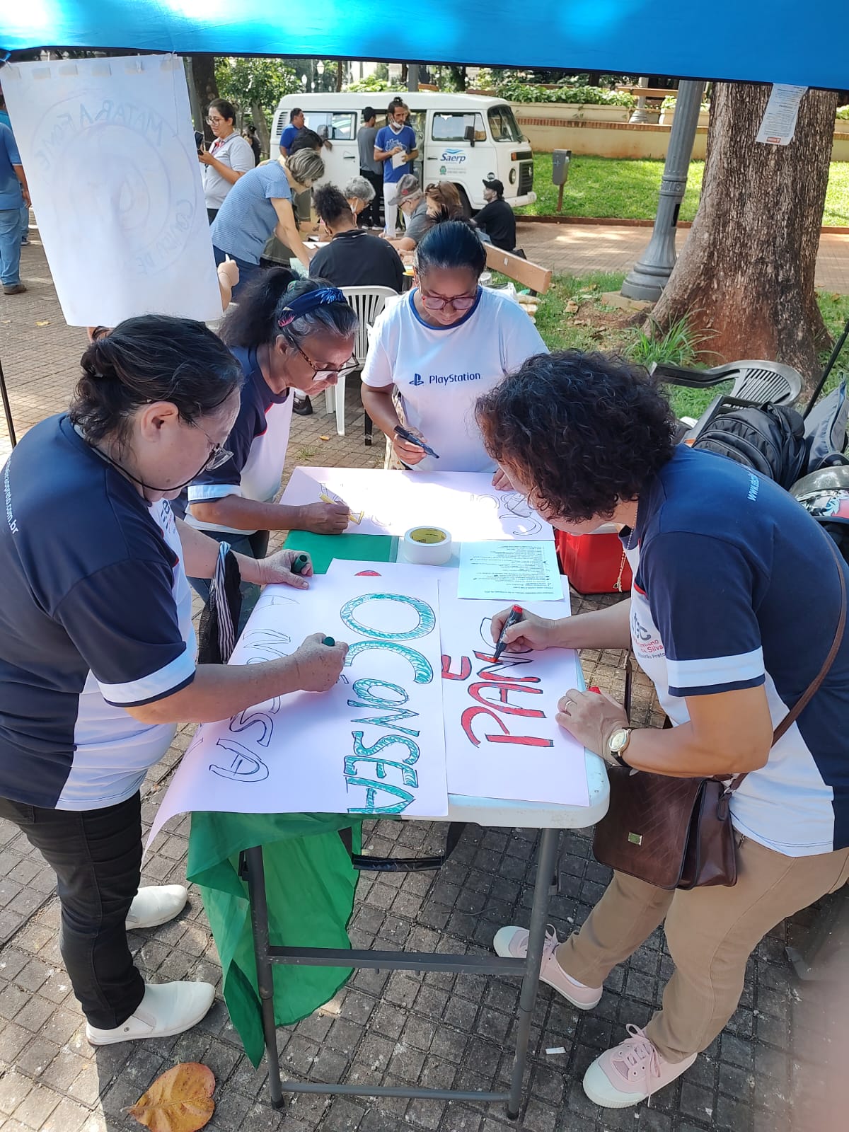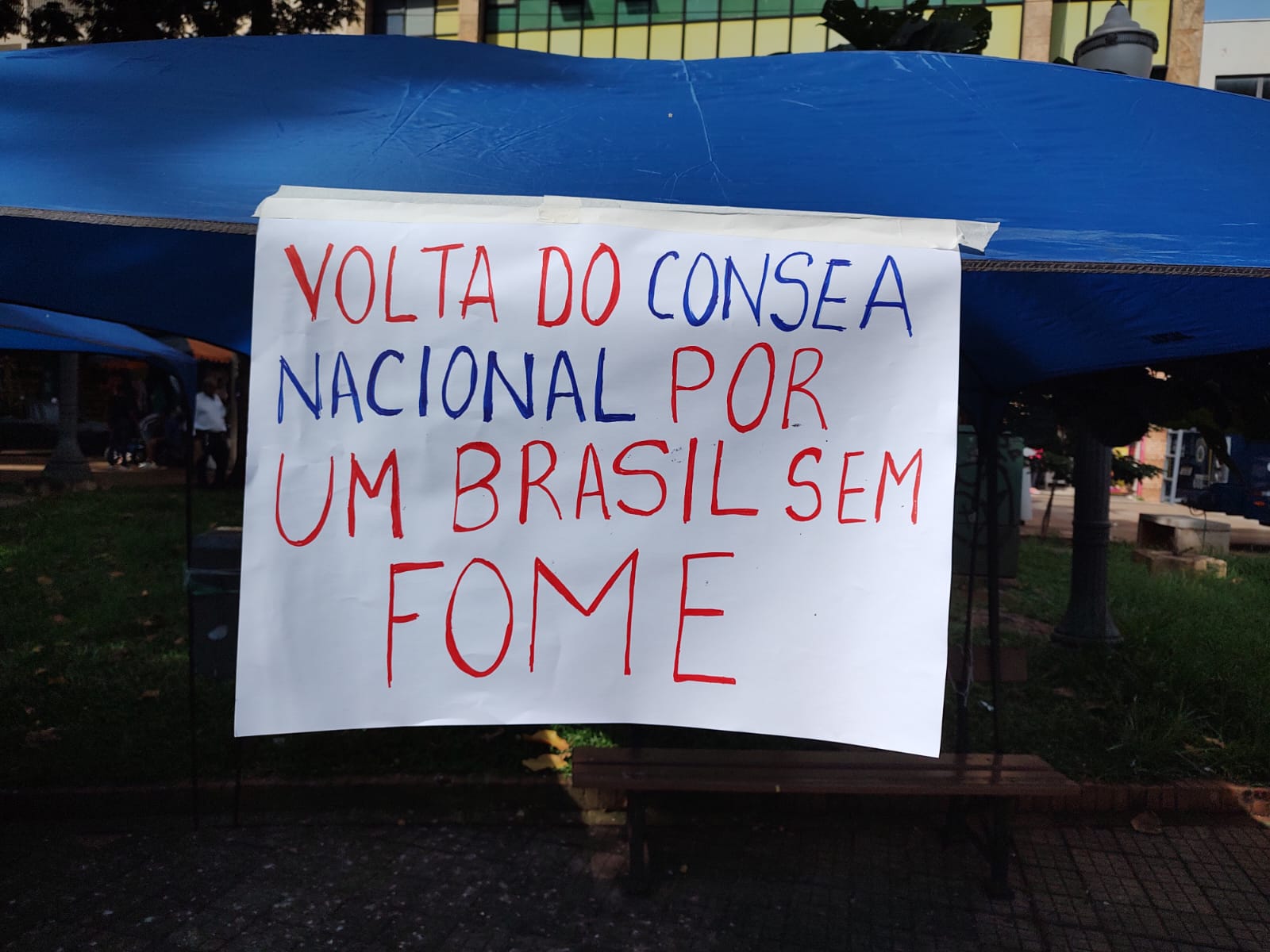 Em Ribeirão Preto, SP, a distribuição de refeições e alimentos aconteceu no centro da cidade, e houve também varal com cartazes com informações a respeito do CONSEA e sua importância.