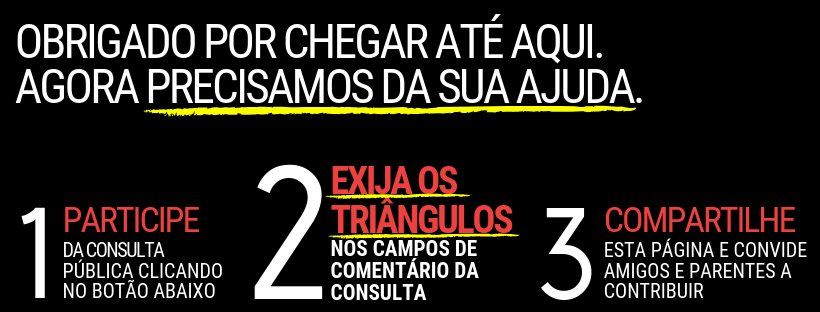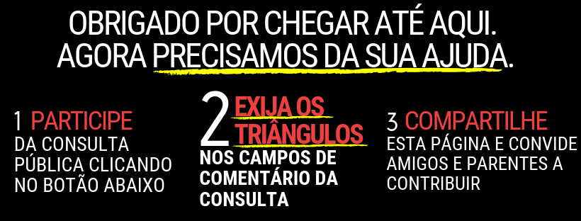 Para isso, é necessário que, durante sua contribuição na Consulta Pública, você cite e defenda o triângulo como melhor opção nos campos de comentários e texto do formulário.
